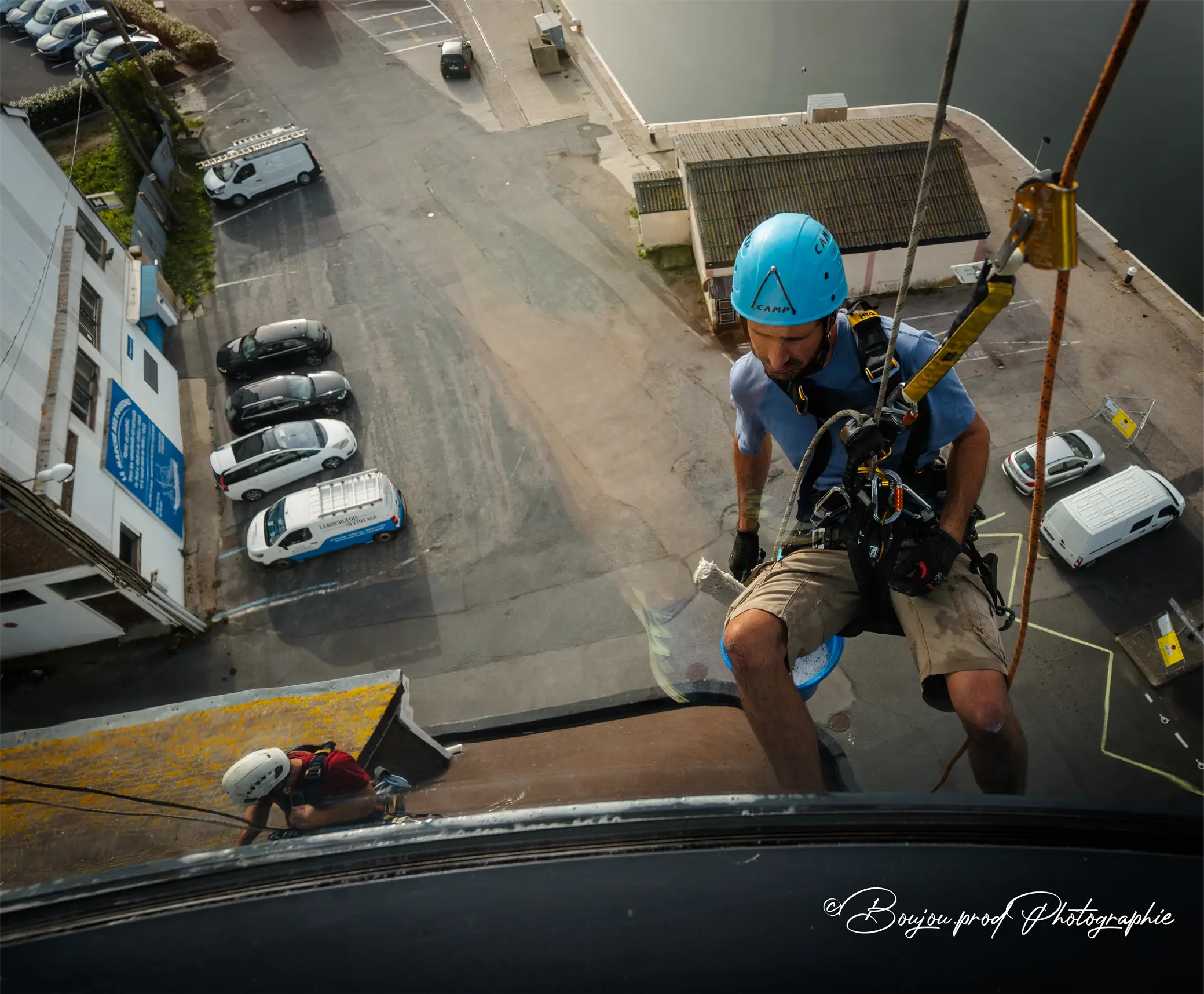 Experts en travaux en hauteur, nous intervenons là où l’accès est complexe ou impossible par des moyens traditionnels. Grâce aux techniques de travail sur corde, nous réalisons des prestations qualitatives et sécurisées sans installation d’échafaudage lourd.
