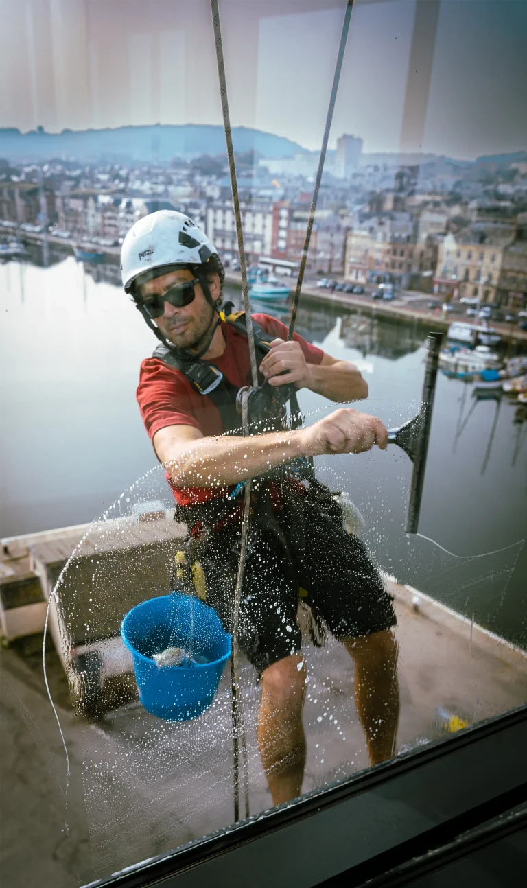 CDNC assure tous vos travaux de nettoyage en hauteur et en accès difficile : lavage de vitres, démoussage de toitures, dévégétalisation, dépigeonnage et nettoyage de façades. Nos cordistes qualifiés interviennent avec du matériel professionnel adapté pour redonner éclat et propreté à vos bâtiments en Normandie. Formules ponctuelles ou contrats d'entretien régulier disponibles.